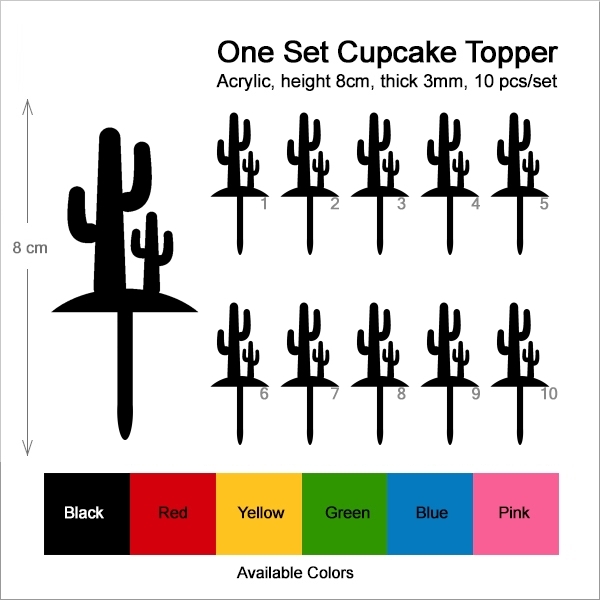 Cactus Cupcake 10 Toppers Laser Cut Acrylic for Wedding Birthday Baby Shower Bachelorette Engagement Party Decor