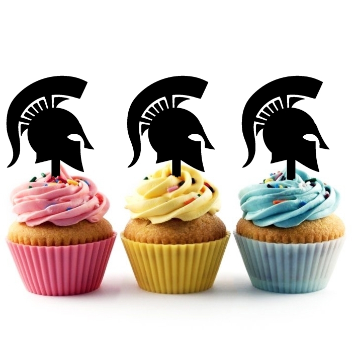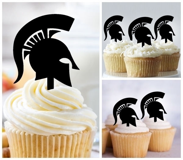 Roman Spartan Sparta Helmet Cupcake 10 Toppers Laser Cut Acrylic for Wedding Birthday Baby Shower Bachelorette Engagement Party Decor