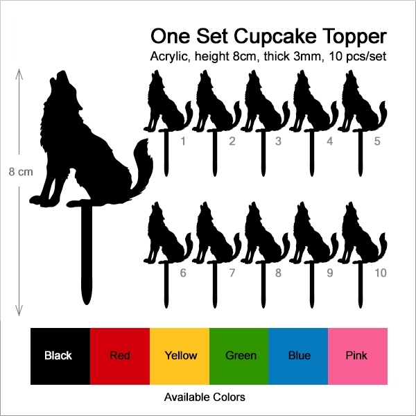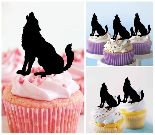 Wolf Howling Cupcake 10 Toppers Laser Cut Acrylic for Wedding Birthday Baby Shower Bachelorette Engagement Party Decor