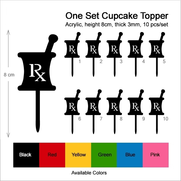 Pharmacy Mortar Pestle Cupcake 10 Toppers Laser Cut Acrylic for Wedding Birthday Baby Shower Bachelorette Engagement Party Decor