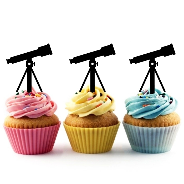 Telescope Cupcake 10 Toppers Laser Cut Acrylic for Wedding Birthday Baby Shower Bachelorette Engagement Party Decor