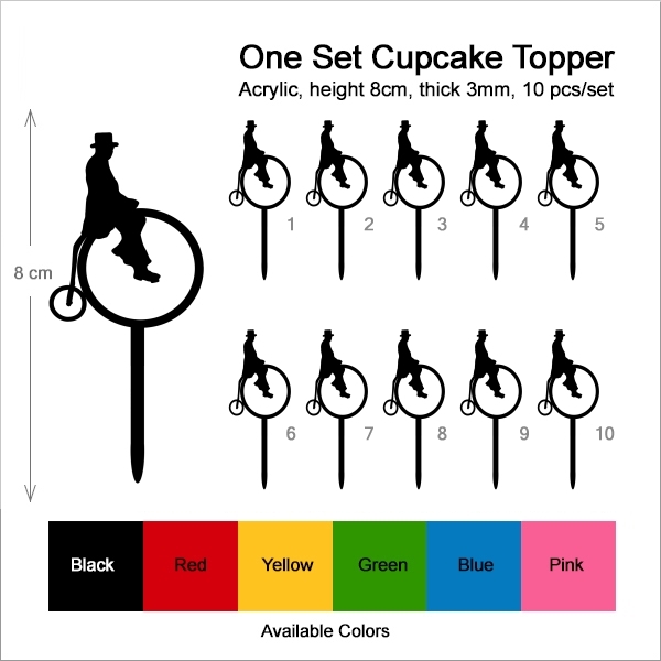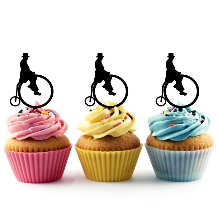 Retro Penny Farthing Cupcake 10 Toppers Laser Cut Acrylic for Wedding Birthday Baby Shower Bachelorette Engagement Party Decor