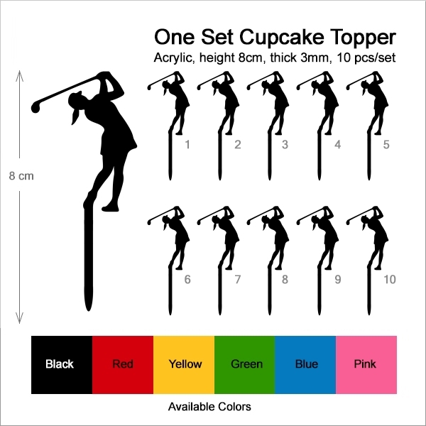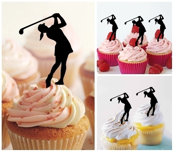Golf Lady Cupcake 10 Toppers Laser Cut Acrylic for Wedding Birthday Baby Shower Bachelorette Engagement Party Decor