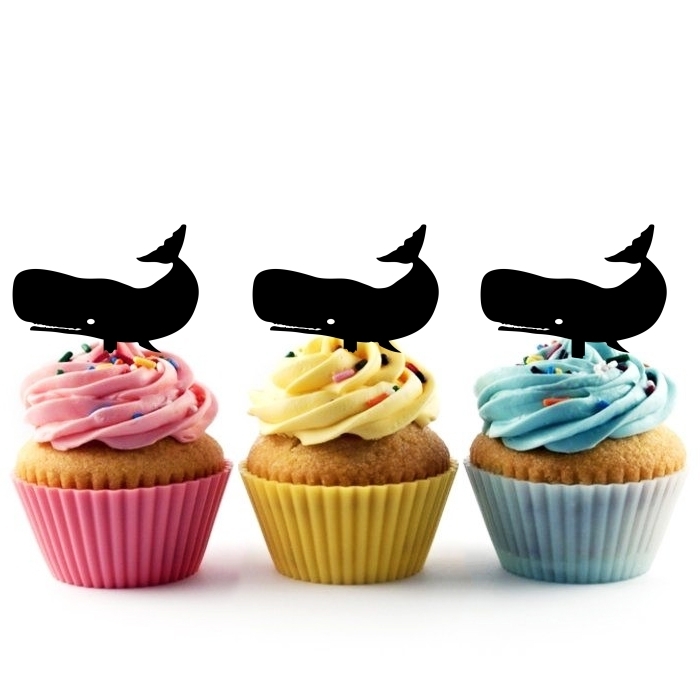 Sperm Whale Cupcake 10 Toppers Laser Cut Acrylic for Wedding Birthday Baby Shower Bachelorette Engagement Party Decor