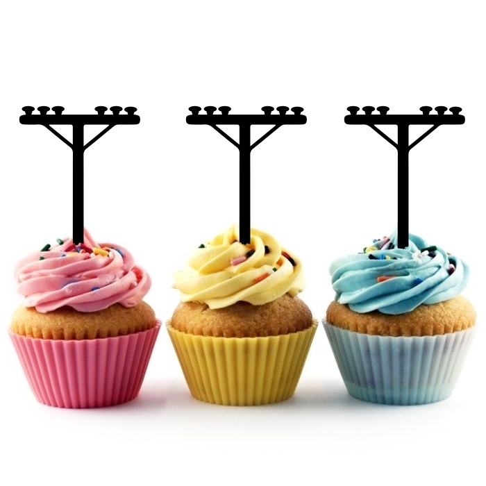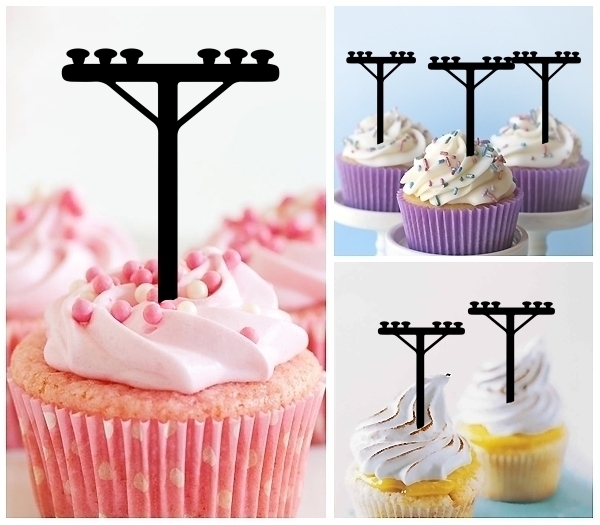 Electric Pole Power Lines Cupcake 10 Toppers Laser Cut Acrylic for Wedding Birthday Baby Shower Bachelorette Engagement Party Decor