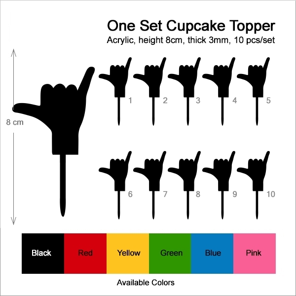 Shaka Hand Sign Cupcake 10 Toppers Laser Cut Acrylic for Wedding Birthday Baby Shower Bachelorette Engagement Party Decor