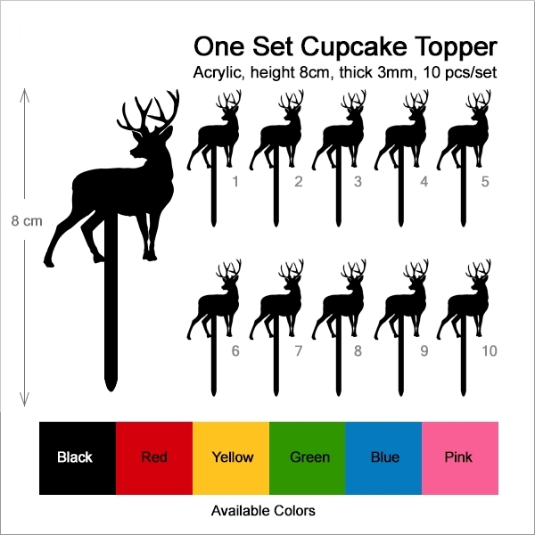 Deer Reindeer Cupcake 10 Toppers Laser Cut Acrylic for Wedding Birthday Baby Shower Bachelorette Engagement Party Decor