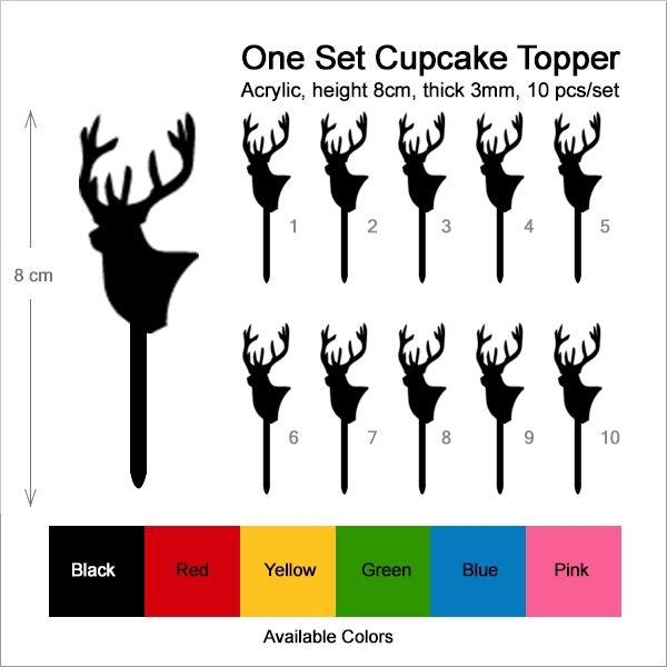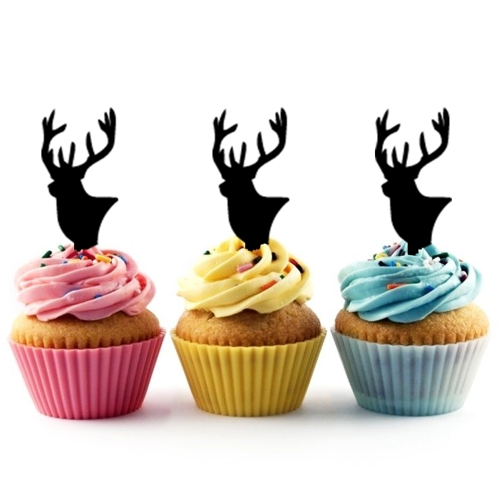 Stag Deer Head Cupcake 10 Toppers Laser Cut Acrylic for Wedding Birthday Baby Shower Bachelorette Engagement Party Decor