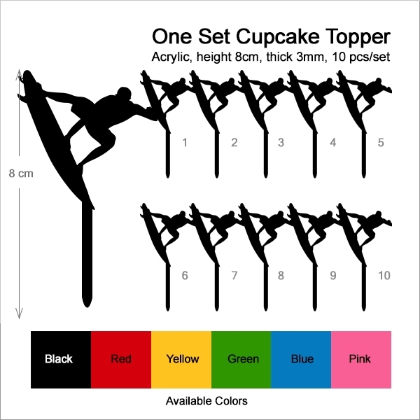 Surf Surfboard Cupcake 10 Toppers Laser Cut Acrylic for Wedding Birthday Baby Shower Bachelorette Engagement Party Decor