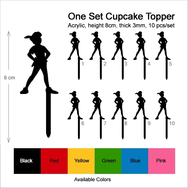 Peter Pan Cupcake 10 Toppers Laser Cut Acrylic for Wedding Birthday Baby Shower Bachelorette Engagement Party Decor