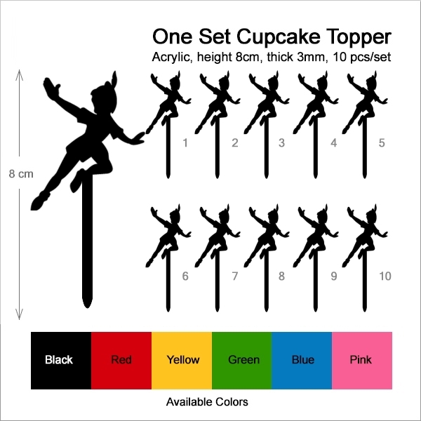 Peter Pan Cupcake 10 Toppers Laser Cut Acrylic for Wedding Birthday Baby Shower Bachelorette Engagement Party Decor