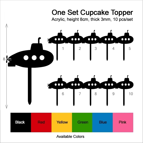 Submarine Cupcake 10 Toppers Laser Cut Acrylic for Wedding Birthday Baby Shower Bachelorette Engagement Party Decor