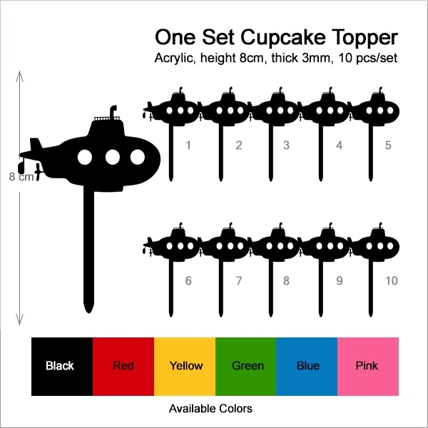 Submarine Cupcake 10 Toppers Laser Cut Acrylic for Wedding Birthday Baby Shower Bachelorette Engagement Party Decor