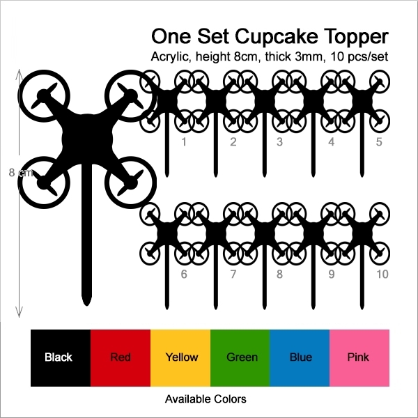 Drone Cupcake 10 Toppers Laser Cut Acrylic for Wedding Birthday Baby Shower Bachelorette Engagement Party Decor