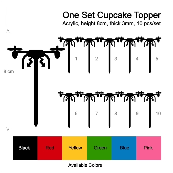 Drone Cupcake 10 Toppers Laser Cut Acrylic for Wedding Birthday Baby Shower Bachelorette Engagement Party Decor