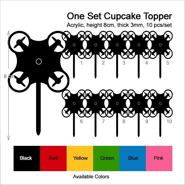 Drone Cupcake 10 Toppers Laser Cut Acrylic for Wedding Birthday Baby Shower Bachelorette Engagement Party Decor