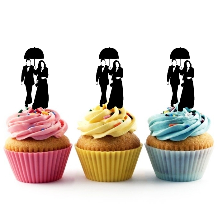 Umbrella Couple Cupcake 10 Toppers Laser Cut Acrylic for Wedding Birthday Baby Shower Bachelorette Engagement Party Decor