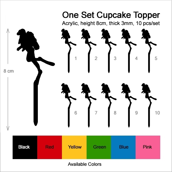 Diver Cupcake 10 Toppers Laser Cut Acrylic for Wedding Birthday Baby Shower Bachelorette Engagement Party Decor