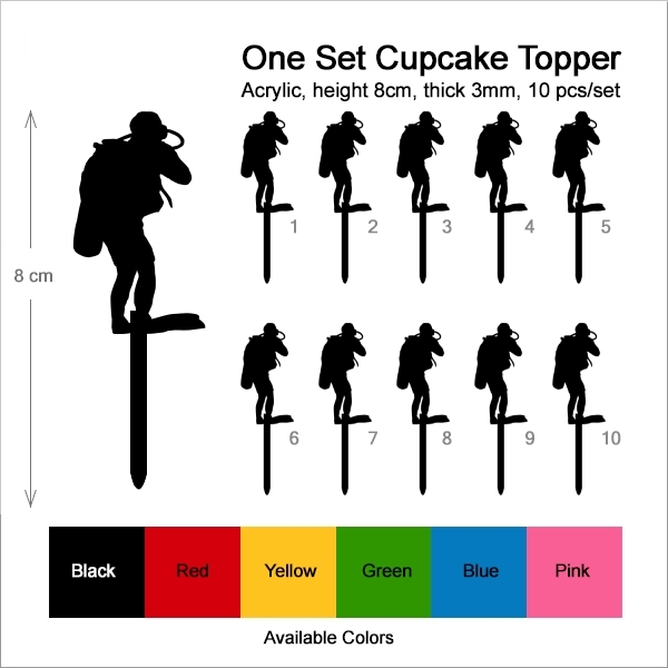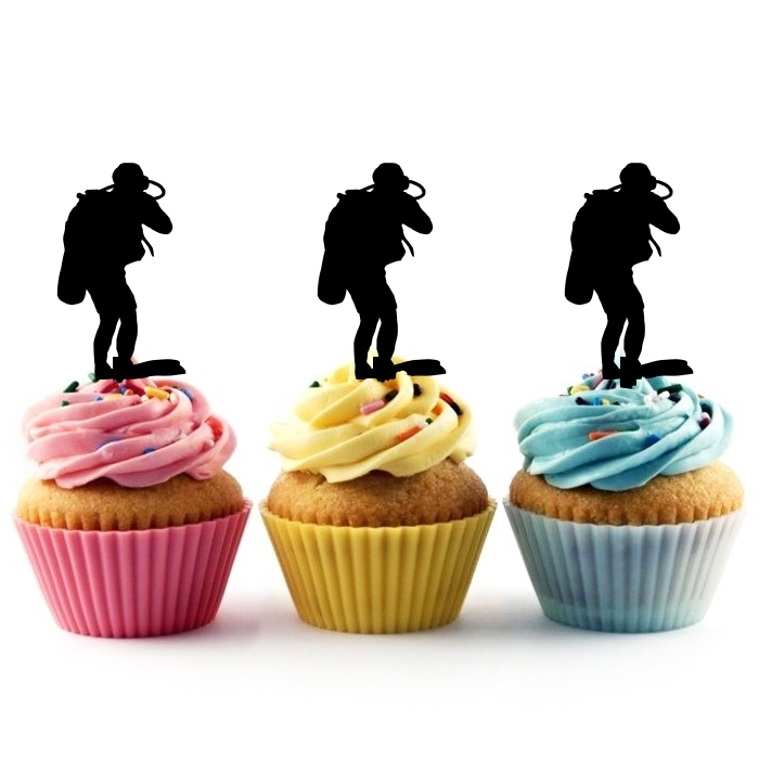 Standing Diver Cupcake 10 Toppers Laser Cut Acrylic for Wedding Birthday Baby Shower Bachelorette Engagement Party Decor