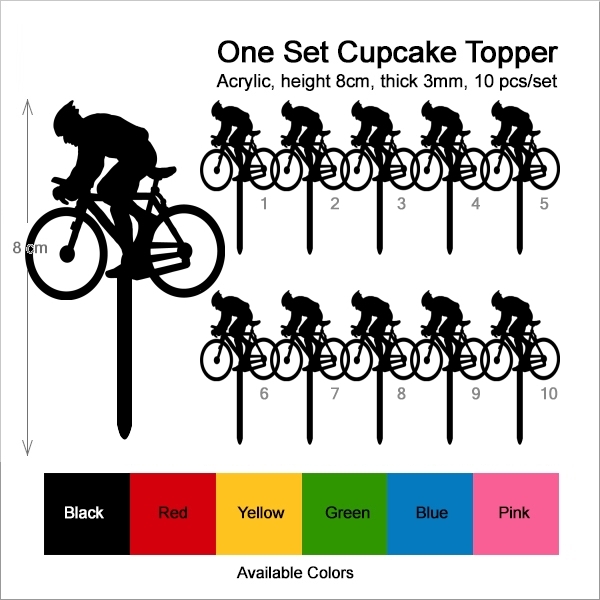 Bicycle Sport Cupcake 10 Toppers Laser Cut Acrylic for Wedding Birthday Baby Shower Bachelorette Engagement Party Decor
