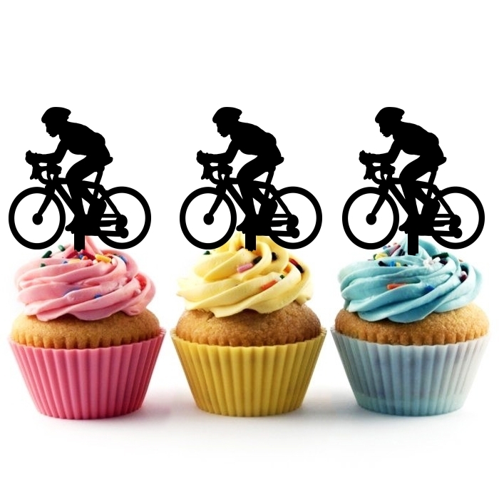 Bicycle Sport Cupcake 10 Toppers Laser Cut Acrylic for Wedding Birthday Baby Shower Bachelorette Engagement Party Decor