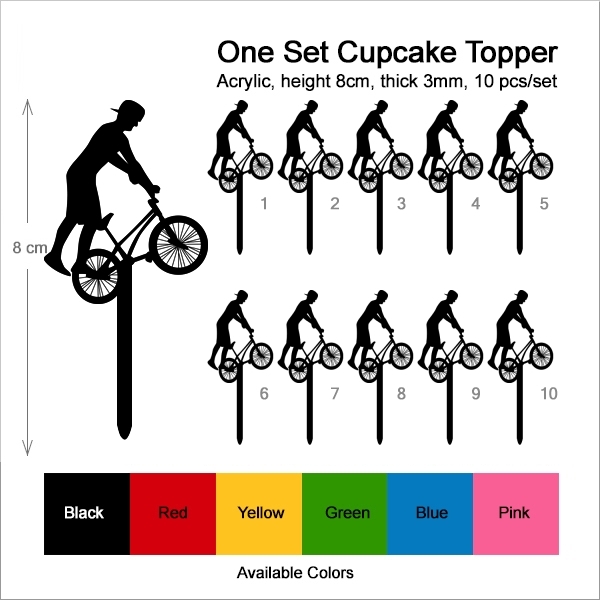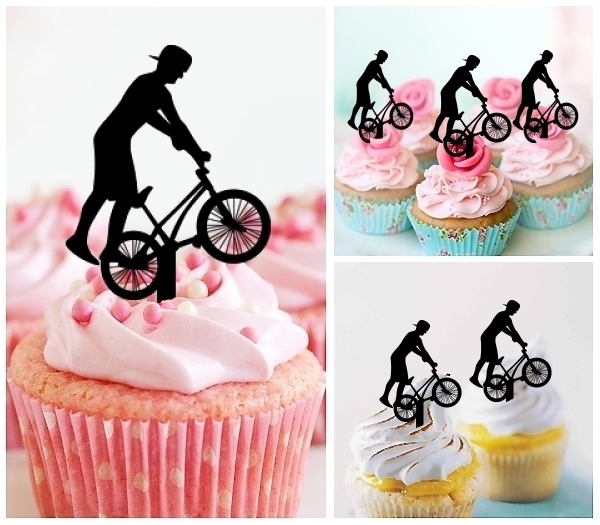 Bicycle Boy Extreme Cupcake 10 Toppers Laser Cut Acrylic for Wedding Birthday Baby Shower Bachelorette Engagement Party Decor