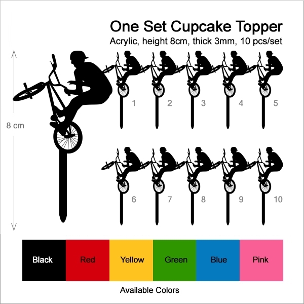 Bicycle Boy Extreme Cupcake 10 Toppers Laser Cut Acrylic for Wedding Birthday Baby Shower Bachelorette Engagement Party Decor
