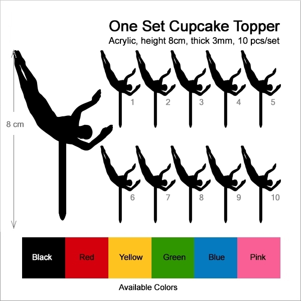 Diving Swimmer Cupcake 10 Toppers Laser Cut Acrylic for Wedding Birthday Baby Shower Bachelorette Engagement Party Decor