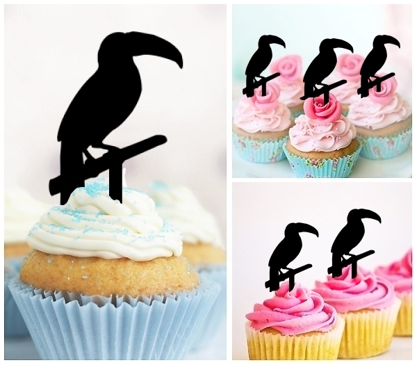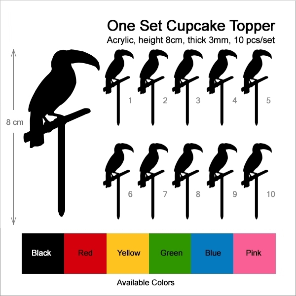 Toucan Bird Cupcake 10 Toppers Laser Cut Acrylic for Wedding Birthday Baby Shower Bachelorette Engagement Party Decor