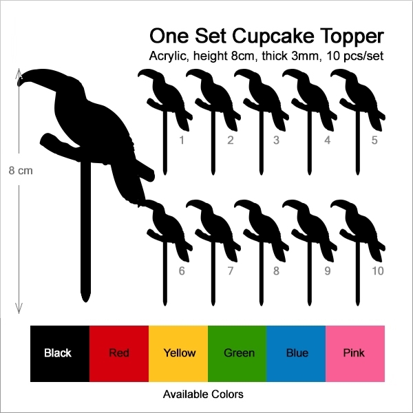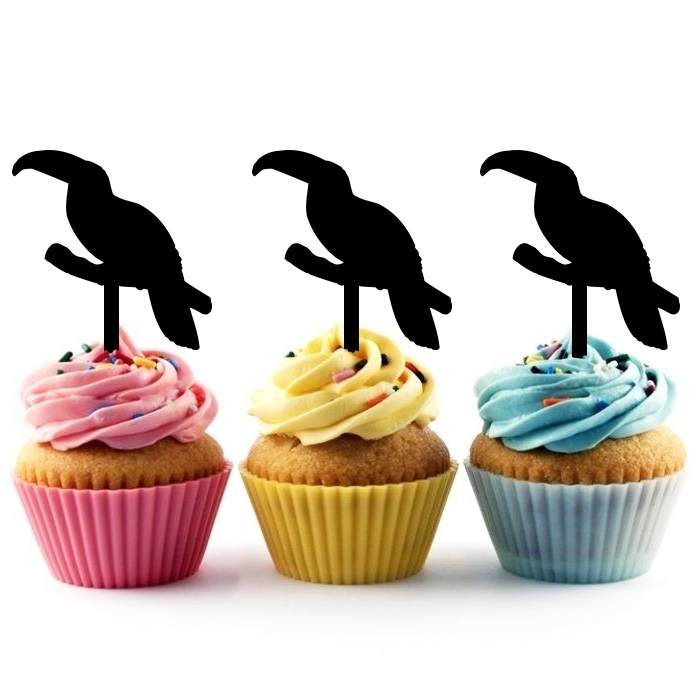 TA0082 Toucan Bird Laser Cut Cupcake Acrylic Toppers for Party Wedding Birthday Decorations