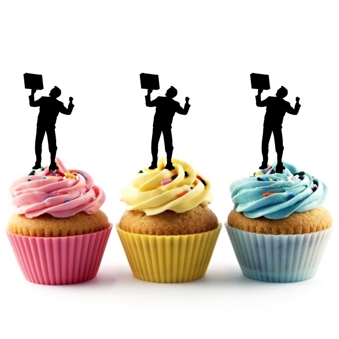 Business Man Cheering Cupcake 10 Toppers Laser Cut Acrylic for Wedding Birthday Baby Shower Bachelorette Engagement Party Decor