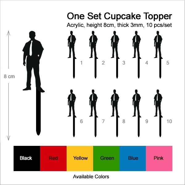 Business Man Cupcake 10 Toppers Laser Cut Acrylic for Wedding Birthday Baby Shower Bachelorette Engagement Party Decor