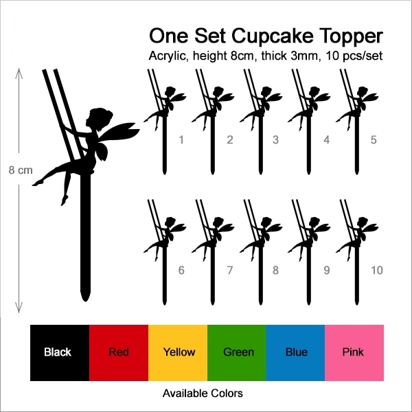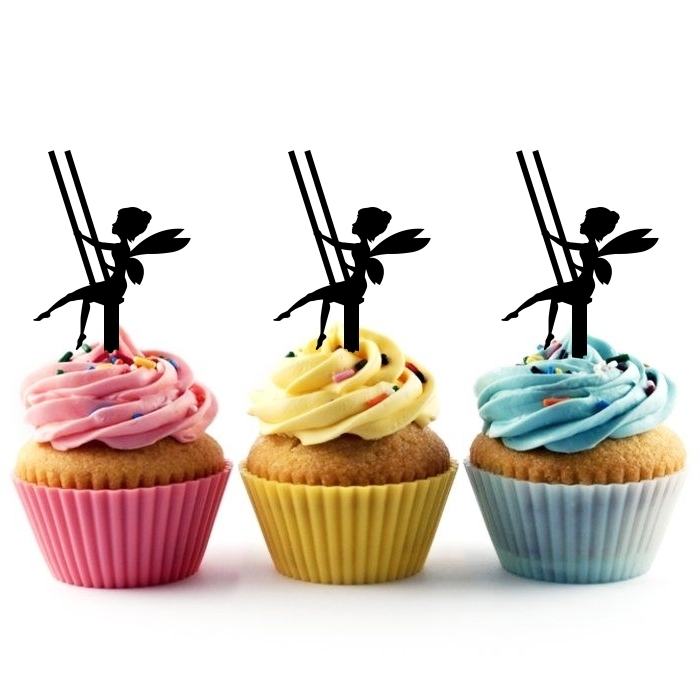Fairy Tinkerbell and a Swinging Chair Cupcake 10 Toppers Laser Cut Acrylic for Wedding Birthday Baby Shower Bachelorette Engagement Party Decor