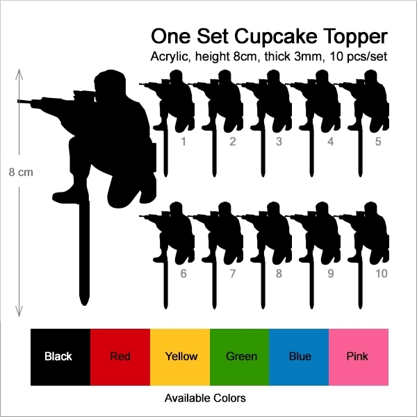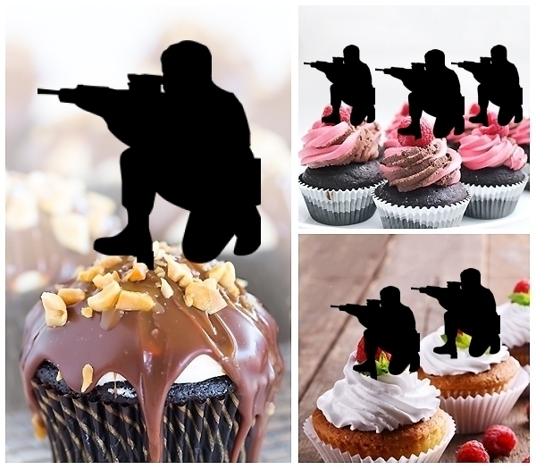 Paintball Commando Cupcake 10 Toppers Laser Cut Acrylic for Wedding Birthday Baby Shower Bachelorette Engagement Party Decor