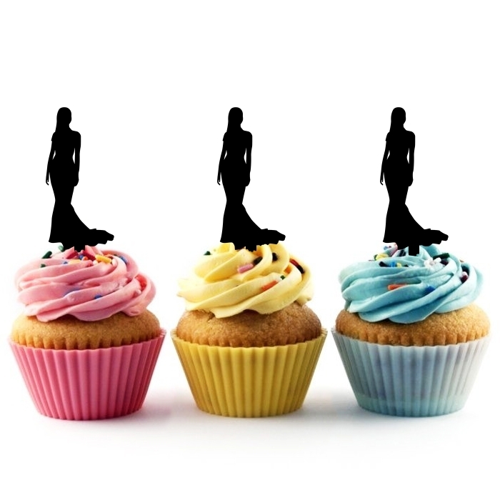 Model Lady Party Dress Cupcake 10 Toppers Laser Cut Acrylic for Wedding Birthday Baby Shower Bachelorette Engagement Party Decor