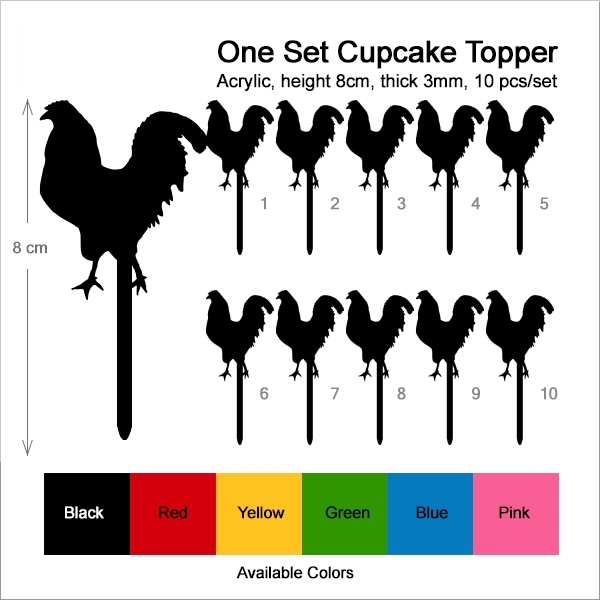 Chicken Cupcake 10 Toppers Laser Cut Acrylic for Wedding Birthday Baby Shower Bachelorette Engagement Party Decor