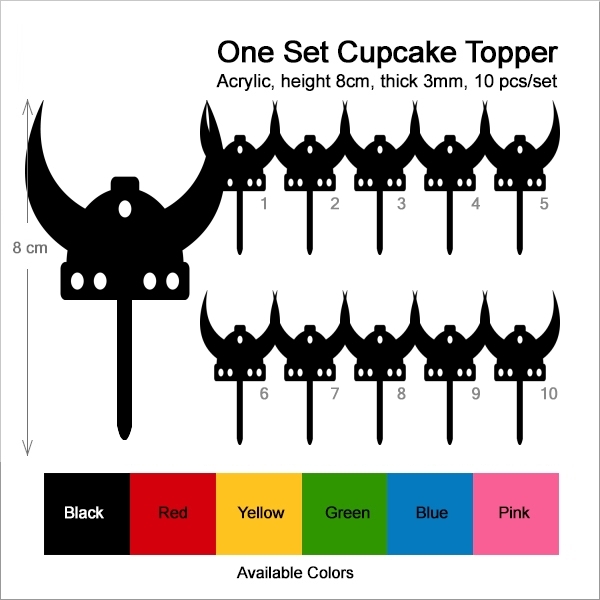 Viking Helmet Cupcake 10 Toppers Laser Cut Acrylic for Wedding Birthday Baby Shower Bachelorette Engagement Party Decor