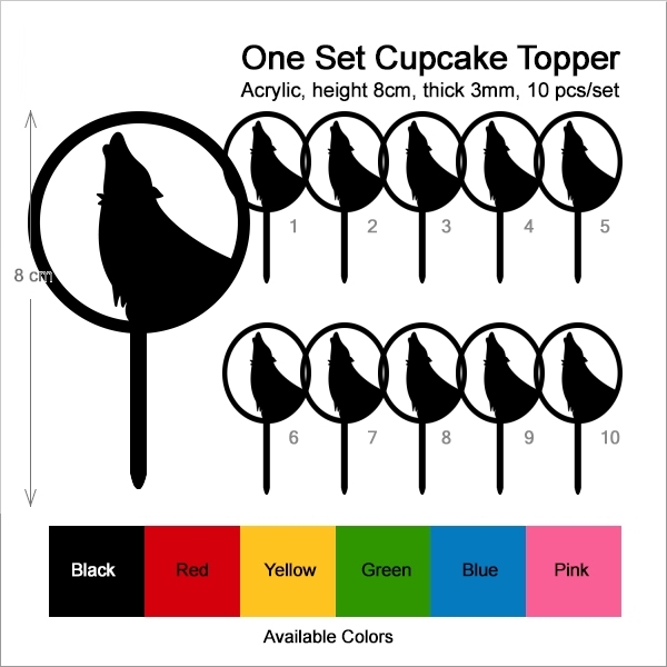 Wolf Howling Cupcake 10 Toppers Laser Cut Acrylic for Wedding Birthday Baby Shower Bachelorette Engagement Party Decor