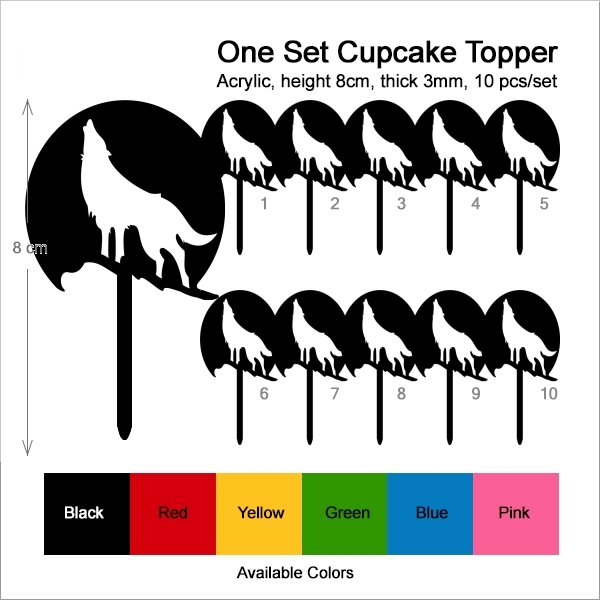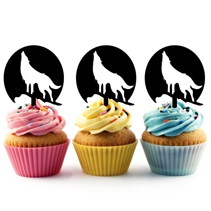 Wolf Howling Cupcake 10 Toppers Laser Cut Acrylic for Wedding Birthday Baby Shower Bachelorette Engagement Party Decor