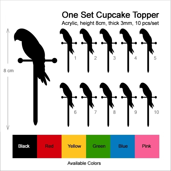 Pirate Parrot Cupcake 10 Toppers Laser Cut Acrylic for Wedding Birthday Baby Shower Bachelorette Engagement Party Decor
