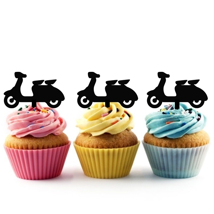 Motorcycle Scooter Cupcake 10 Toppers Laser Cut Acrylic for Wedding Birthday Baby Shower Bachelorette Engagement Party Decor