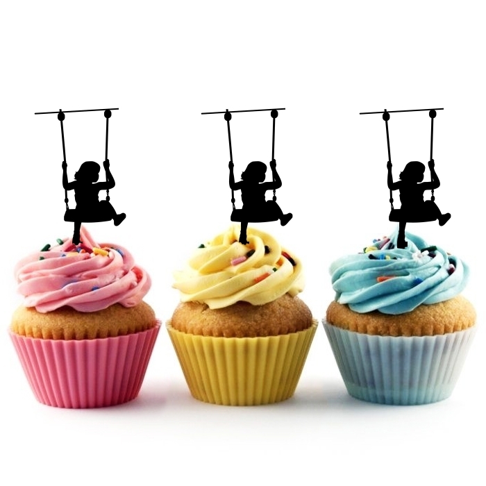 Kid and a Swinging Chair Cupcake 10 Toppers Laser Cut Acrylic for Wedding Birthday Baby Shower Bachelorette Engagement Party Decor