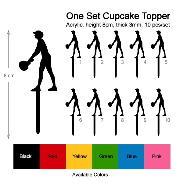 Tennis Player Cupcake 10 Toppers Laser Cut Acrylic for Wedding Birthday Baby Shower Bachelorette Engagement Party Decor