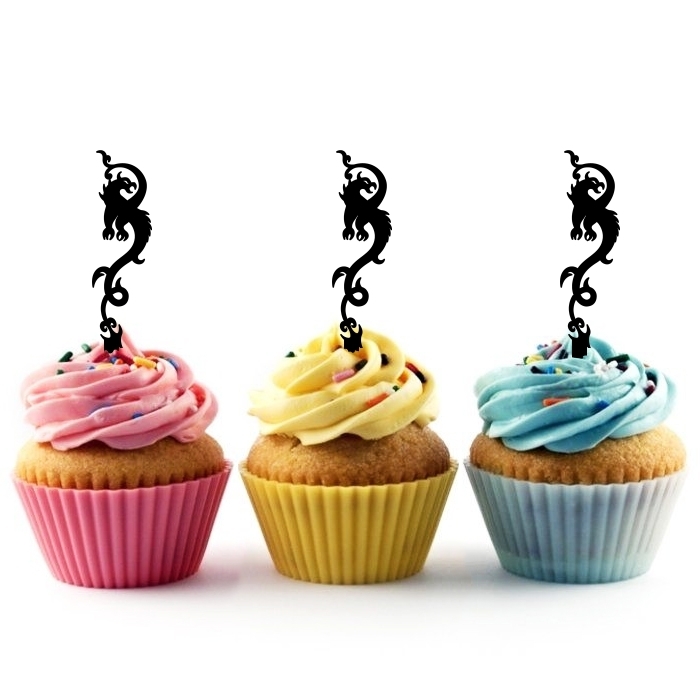 Tribal Dragon Cupcake 10 Toppers Laser Cut Acrylic for Wedding Birthday Baby Shower Bachelorette Engagement Party Decor