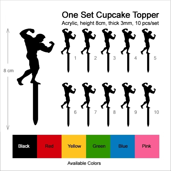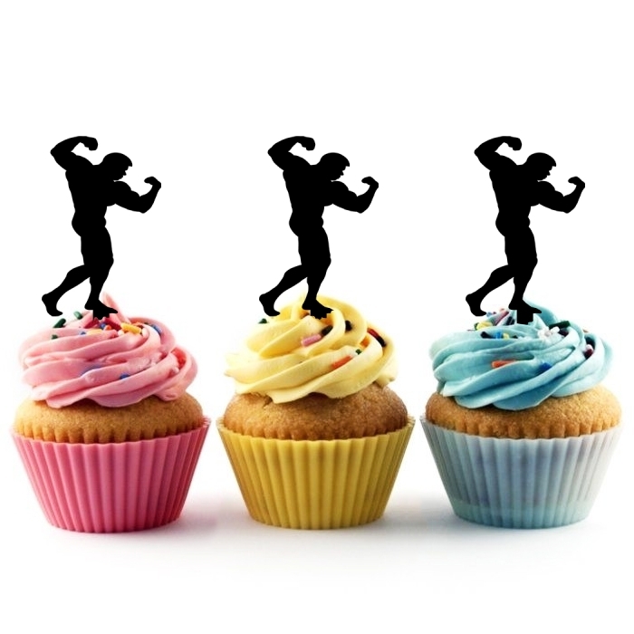 Bodybuilding Man Pose Cupcake 10 Toppers Laser Cut Acrylic for Wedding Birthday Baby Shower Bachelorette Engagement Party Decor
