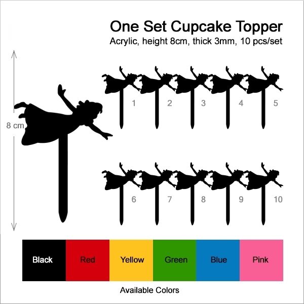 Peter Pan Wendy Cupcake 10 Toppers Laser Cut Acrylic for Wedding Birthday Baby Shower Bachelorette Engagement Party Decor