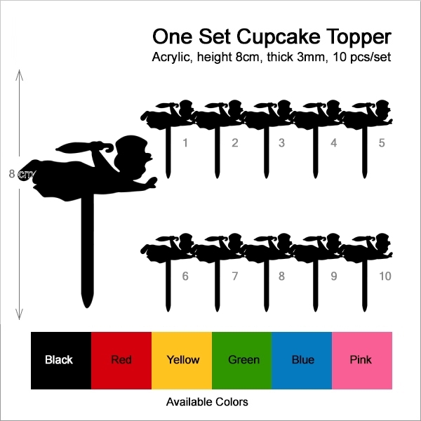 Peter Pan John Cupcake 10 Toppers Laser Cut Acrylic for Wedding Birthday Baby Shower Bachelorette Engagement Party Decor