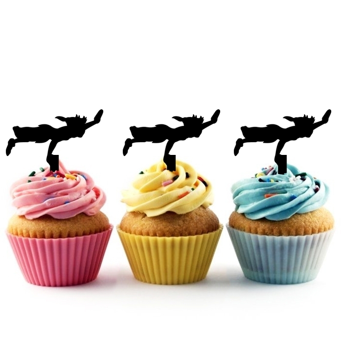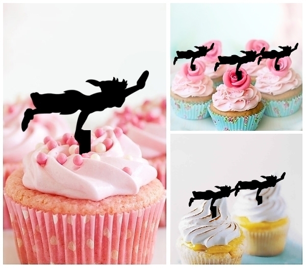 Peter Pan Cupcake 10 Toppers Laser Cut Acrylic for Wedding Birthday Baby Shower Bachelorette Engagement Party Decor