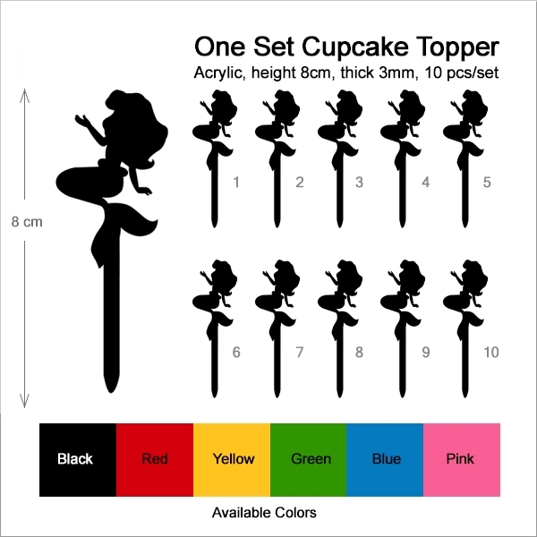 TA0237 Mermaid Laser Cut Cupcake Acrylic Toppers for Party Wedding Birthday Decorations