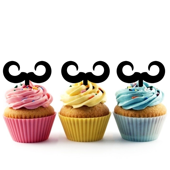 Mustache Cupcake 10 Toppers Laser Cut Acrylic for Wedding Birthday Baby Shower Bachelorette Engagement Party Decor